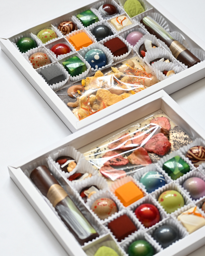 Nuestra caja de chocolates es un homenaje al cacao colombiano y la creatividad en cada relleno.