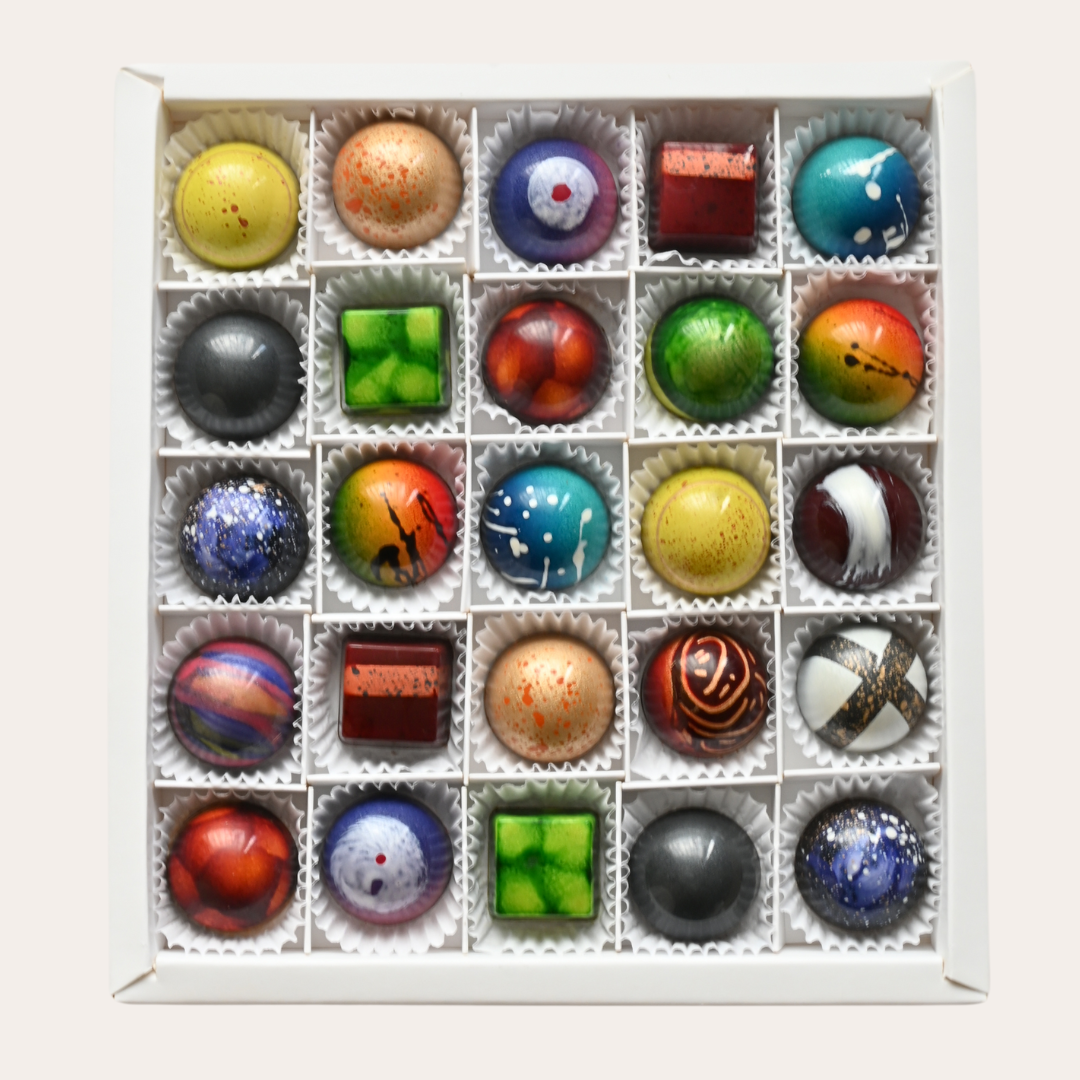 Sorprende y deleita con una experiencia incomparable de sabor y sofisticación gracias a nuestra exquisita caja de 25 bombones, donde cada bocado es una obra de arte.