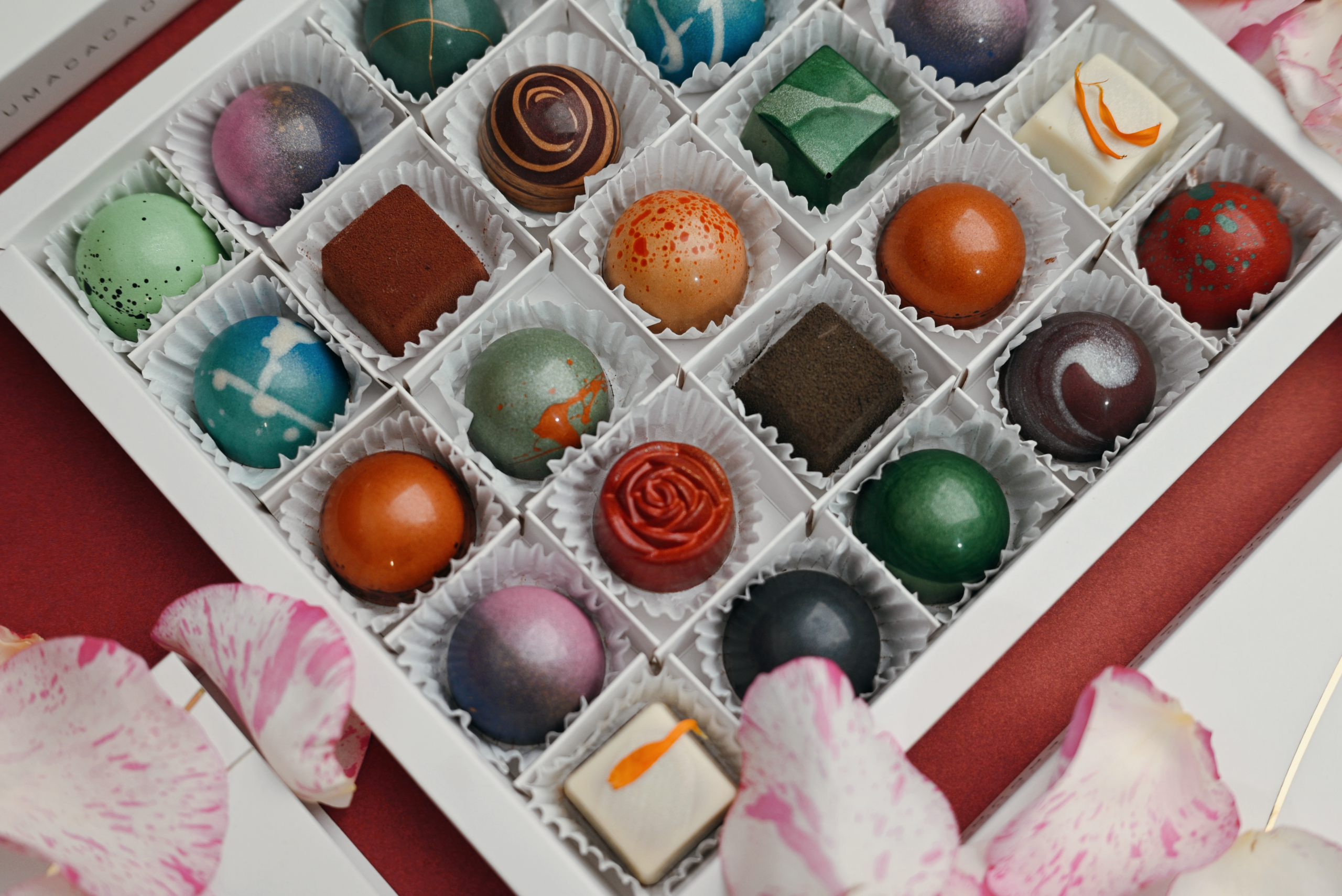 Descubre la exquisita caja de 25 bombones de chocolate de lujo, donde puedes elegir hasta 15 sabores únicos y exclusivos. Cada bombón es una obra de arte de autor, elaborada con ingredientes de la más alta calidad, que promete deleitar tus sentidos. El empaque es elegante y sofisticado, ideal para regalar o disfrutar en ocasiones especiales, y viene acompañado de una tarjeta personalizada que añade un toque especial a tu elección.